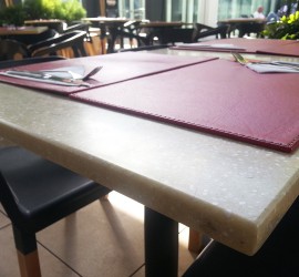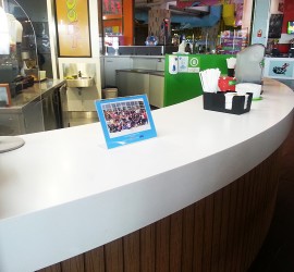 Se utilizó Staron® Quasar White en los mesones de Wensy´s, en Alto Las Condes.