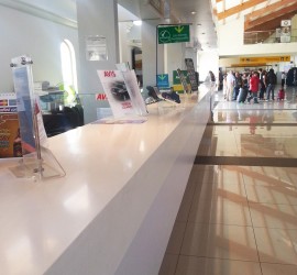 Se utilizó Staron® Quasar White en el mobiliario Pasa Valores. Diseñado y Fabricado por Loïc Thiebaut de Neo Concepto (neoconcepto.ltd@gmail.com)