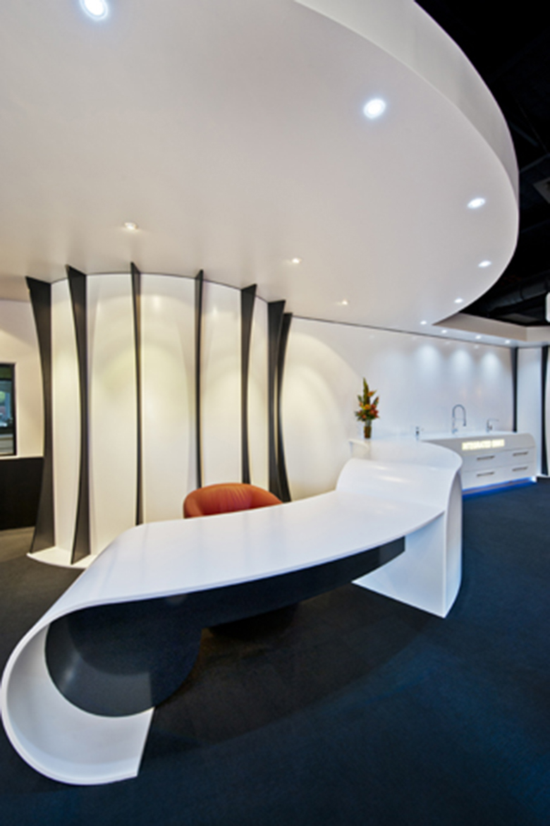Diseño para el Showroom de Waves Surfaces a cargo de Peter Carman de Dakota Design, ganador del Staron Design Award 2011